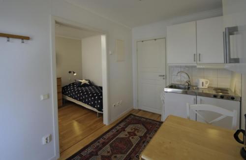 I tvåbäddsrummets kök med kylskåp kan du förvara och tillaga mat. Tvåbäddsrummet har eget badrum, egen ingång, en te- och kaffekokare samt en uteplats. I enheten finns 2 sängar.