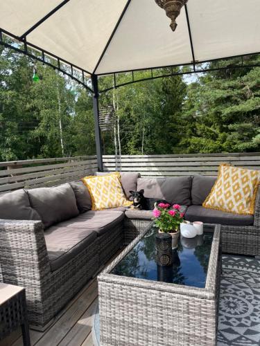 Located in Stockholm, 32 km from Fotografiska - Museum of Photography and 33 km from Tele2 Arena, Ingarö Brudbergsvägen 17 offers a garden and air conditioning. This property offers access to a patio and free private parking. The property is non-smoking and is situated 36 km from Army Museum. The holiday home with a terrace and quiet street views features 2 bedrooms, a living room, a flat-screen TV, an equipped kitchen with a dishwasher and an oven, and 1 bathroom with a shower. Guests can take in the ambience of the surroundings from an outdoor dining area or keep themselves warm by the fireplace on colder days. Vasa Museum is 37 km from the holiday home, while Skansen Open-Air Museum is 37 km away. The nearest airport is Bromma Stockholm Airport, 45 km from Ingarö Brudbergsvägen 17.